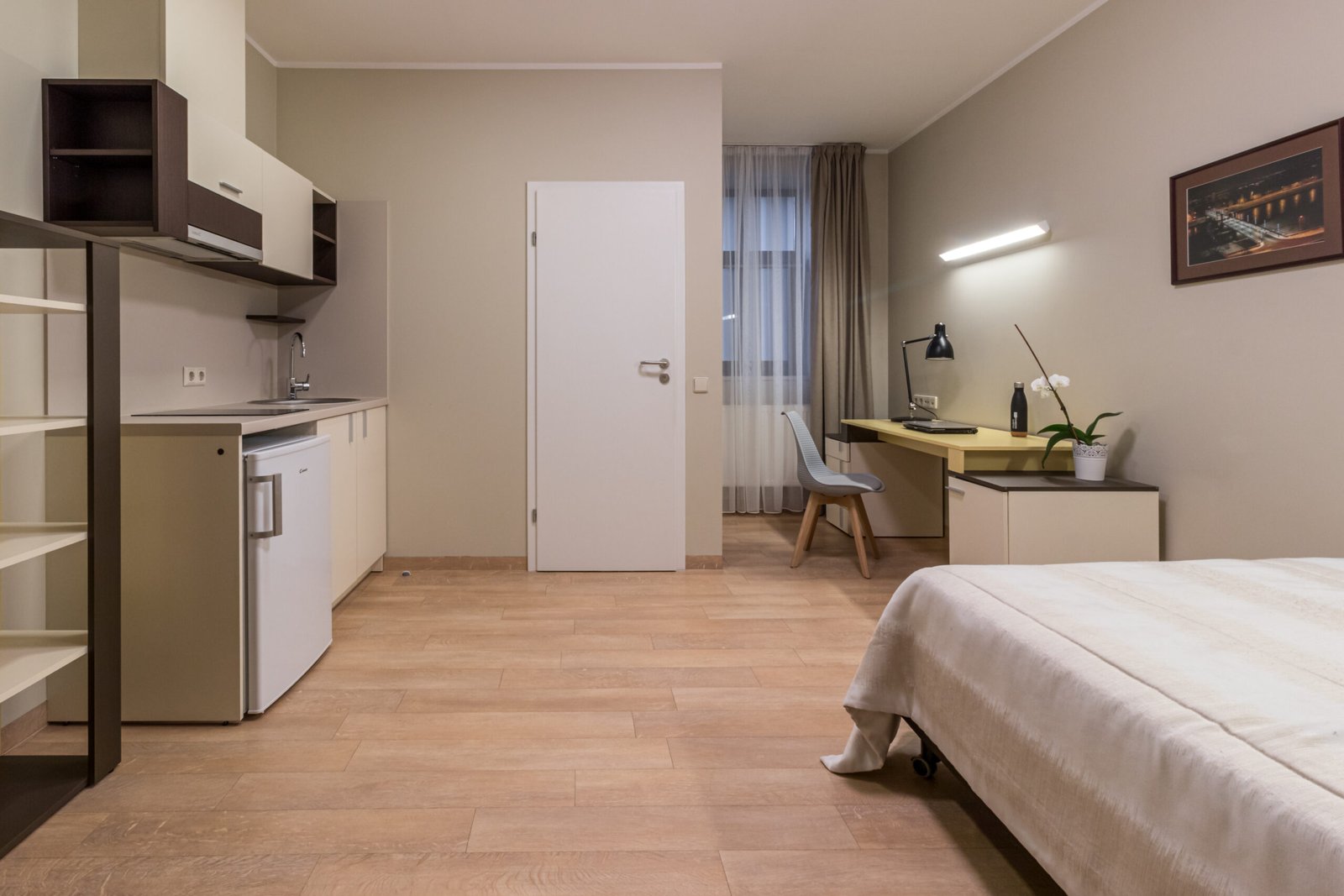 Choose one of our ensuite student rooms in Kaunas for a private, modern, and comfortable student living experience. Each studio is fully self-contained and thoughtfully designed to give you independence during your stay. Enjoy your own private kitchenette with an induction stove, sink, and mini-fridge—ideal for preparing meals at your convenience and saving on dining costs.